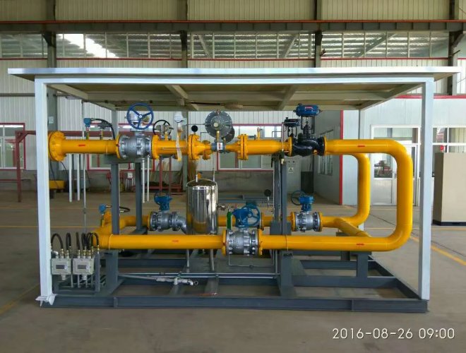 城市門(mén)站調(diào)壓撬是對(duì)天然氣長(zhǎng)輸管路進(jìn)入城市前需要在城市門(mén)站將高壓管路氣體降壓和計(jì)量的一種裝置。我公司生產(chǎn)的城市門(mén)站調(diào)壓撬可根據(jù)客戶(hù)要求量身定制。調(diào)壓器、切斷閥、放散閥、流量計(jì)等均采用國(guó)內(nèi)外優(yōu)質(zhì)名牌,以保證設(shè)備的高質(zhì)量、高精度和高可靠性。產(chǎn)品采用一路調(diào)壓、一路備用,緊急切斷閥與調(diào)壓器的切斷閥雙重保險(xiǎn),從而可靠地保證了下游管線的安全。設(shè)有高精度過(guò)濾器。壓力設(shè)定簡(jiǎn)單,調(diào)壓精確穩(wěn)定可靠。