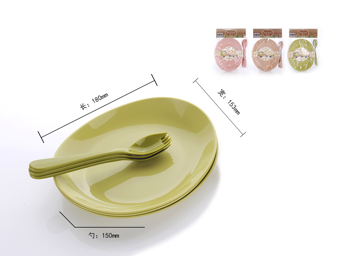 得力熊歐式中號(hào)簡(jiǎn)約橢圓餐盤(4pcs)( 配4pcs叉匙)