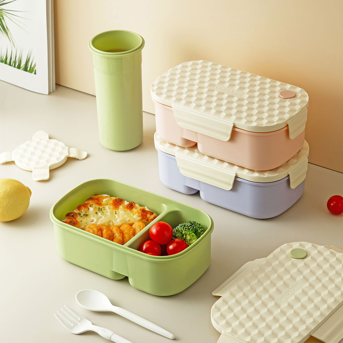 小簡長方套裝飯盒