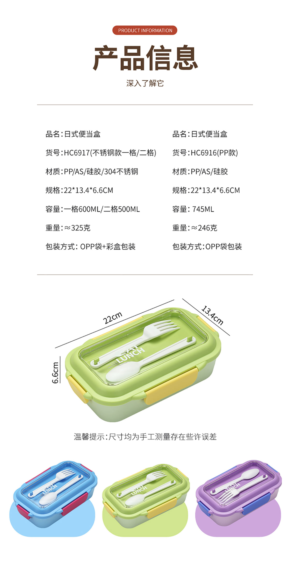 日式便當(dāng)盒PP款二格745ml/不銹鋼款一格600ml/二格500ml