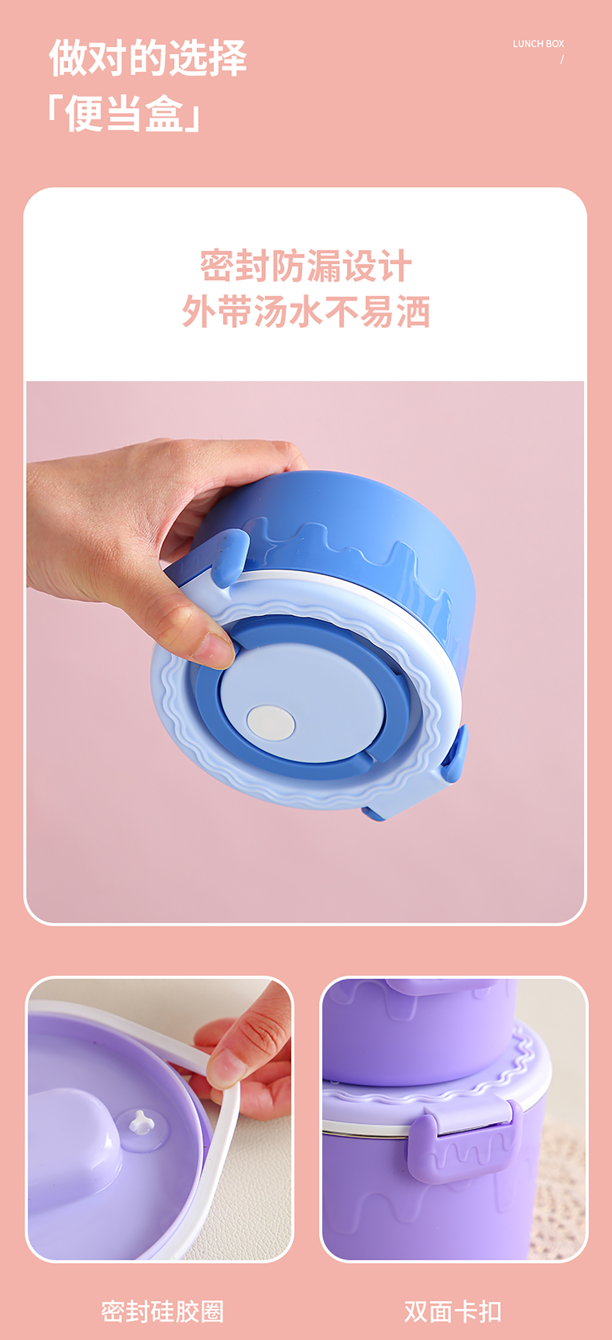 蛋糕圓形不銹鋼雙層飯盒950ml+350ml